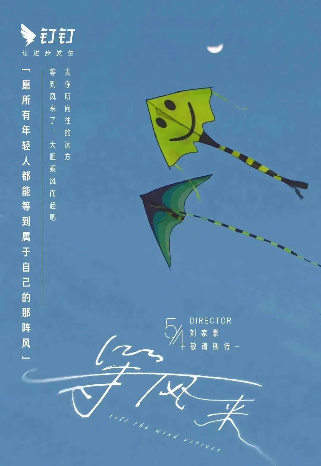 从最早的「钉钉,是一个工作方式」切入协同办公赛道;再到「钉钉,让工作学习更简单」明确了钉钉作为效率工具的场景价值;再到「钉钉,让进步发生」, 是钉钉从「规模时代」进入到「价值时代」的对外表达。新的品牌主张,标志着作为数字生产力工具的钉钉,走向价值深化的方向,完成了从「效率工具」到「数字化普惠」的更迭。将考勤中的「迟到」改成「晚到」,实际上钉钉也在践行这个品牌理念,通过一个细小的改变,让进步发生。钉钉用数字化帮助企业在不确定性中寻找确定性。作为数字生产力工具的钉钉,以数字技术服务千行百业,助力更多组织加速进入数字化时代。时代的车轮滚滚向前,改变和创新才能让企业永葆生命力。这正印证了钉钉的价值主张:「让进步发生」。最后,希望所有看到这个短片的年轻人,都能等到属于自己的那阵风。