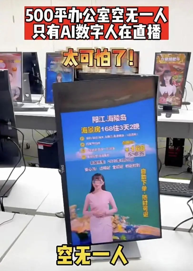 放在以前难以想象,偌大的直播基地可以空无一人,全靠几十台电脑屏幕里的AI主播24小时不间断带货,成本不足真人主播的1/10。