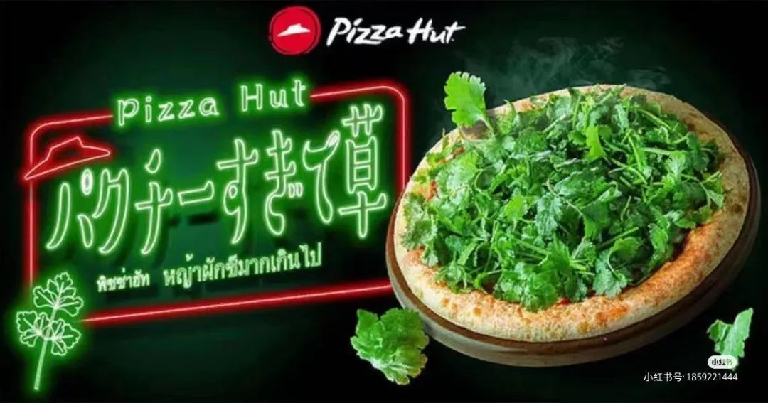 !其实香菜作为品牌的固定营销话题,并不算很奇葩,圈主在搜集素材的时候就发现很多品牌早已出过各种香菜内容的产品营销了。麦当劳曾推出过一款香菜新地,引发了不少讨论,不仅是口味,就连用的是新鲜香菜还是脱水香菜都让网友吵了起来。这是日本必胜客推出的香菜披萨,据说每个披萨含有完整的三株香菜,而且官方还特意强调是味道很强烈的香菜品种。没想到百事也搞过无糖可乐和香菜、咖啡的联名,有种不知死活的黑暗感。安踏香菜鞋