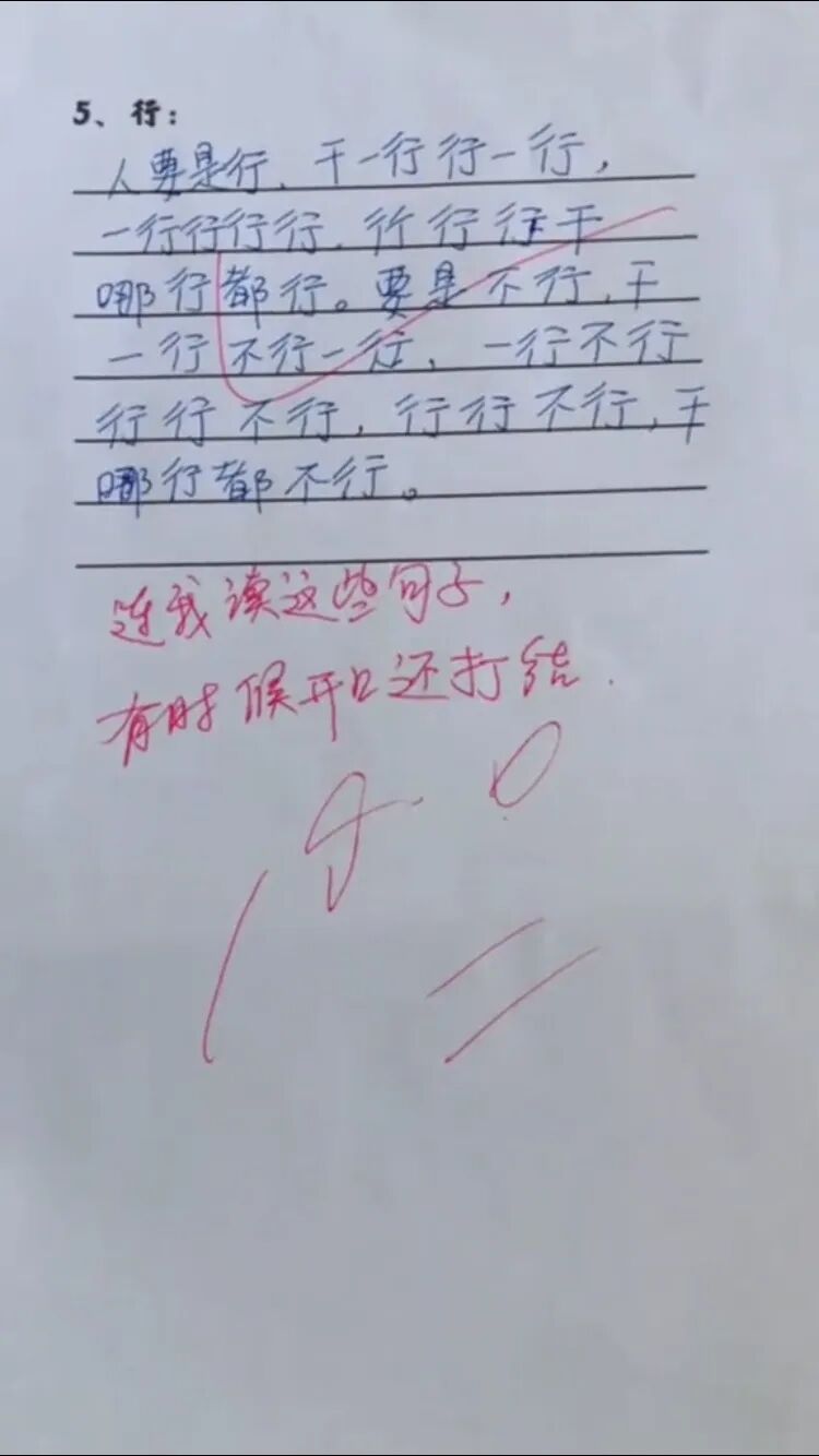 这个小学生造句真的很“在行”,用一个“行”讲了一个“很行”的故事,这波凑字数操作“太行”了!