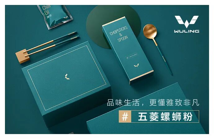 其次在包装上,区别于普通袋装螺蛳粉,本次推出的五菱牌限量版螺蛳粉,采用高贵典雅的祖母绿作为外观主色,内置除螺蛳粉外,还贴心配备了精美餐具套装。充满高级质感的产品形式本身就吸引力十足。跨界本身就是新花样。同样作为柳州的标签。五菱品牌这次选择螺蛳粉在原有积淀和形象上的延伸和拓展,当两个迥异的产品以出乎意料又合情合理的方式合体,它本身就非常具有话题性和趣味性,对于消费者而言也更加有动力去玩、去尝试。由此,两大城市名片出乎意料的跨界联合,如此破次元的脑洞玩法,试问谁不爱。