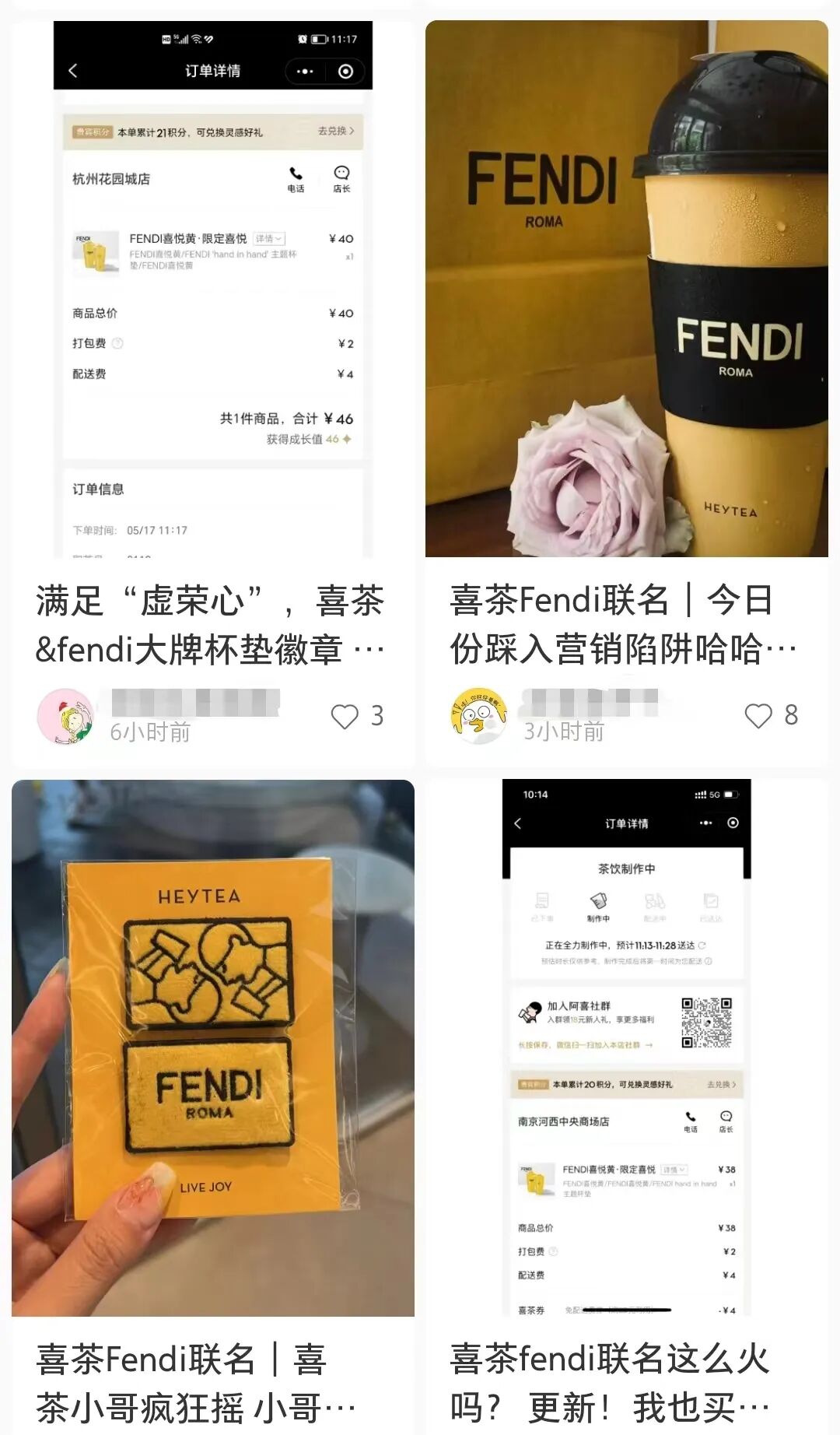 很显然,从前面提到的社媒反馈来看,驱动购买的主要是FENDI的名气。许多网友都讨论过一个观点:和喜茶联名会拉低FENDI的调性。甚至在今天上午因为联名产品的临时下架(据说是因为bug),社交平台还有传言:由于舆论风向不好,FENDI要取消联名。