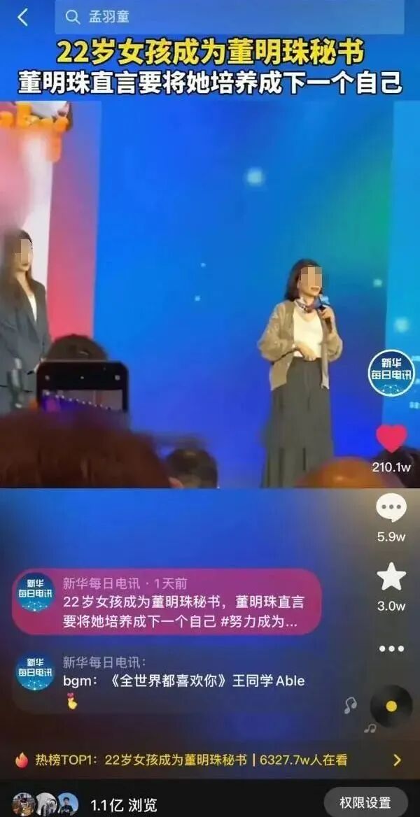 从此,“格力接班人”、“董明珠第二”的光环与滤镜照耀着她,也束缚着她,稍有不符合“接班人”的言论与行为就会成为大众攻讦的对象。
