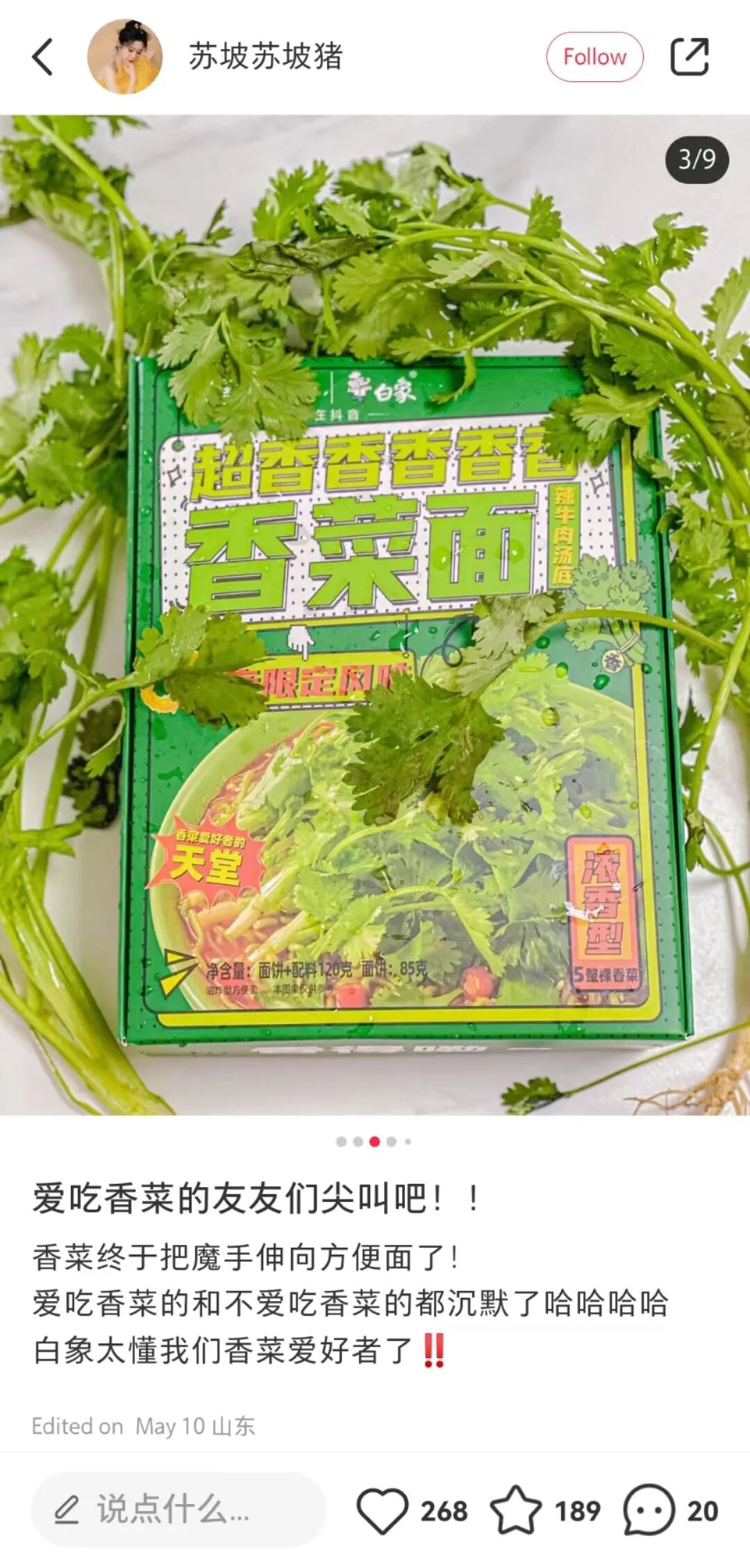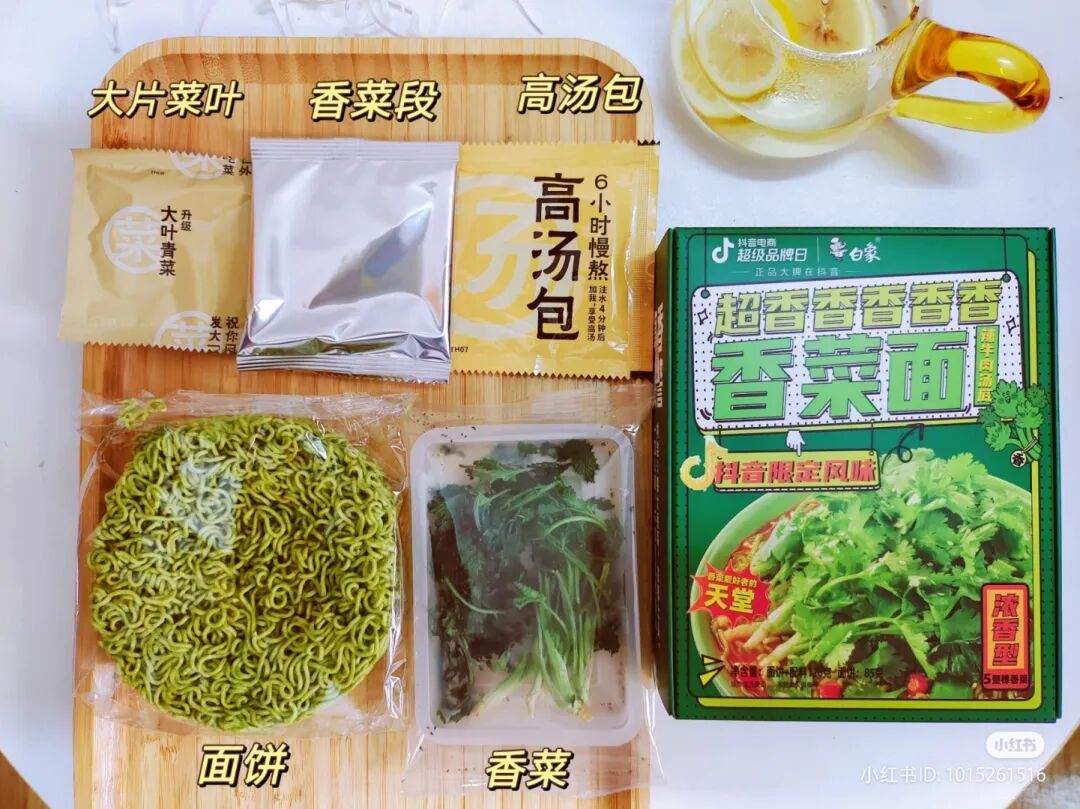 如此神奇的食材,当然逃不脱品牌的“魔爪”。近两年来,品牌把香菜作为原材料研发的产品还真不少,比如白象最近就联合抖音上线了香菜口味新品泡面,足足有五整颗香菜。