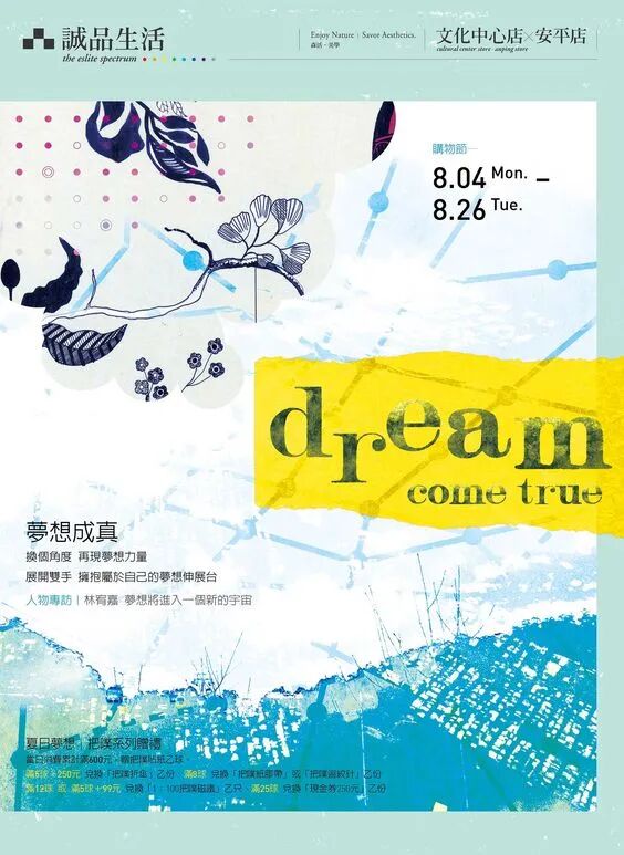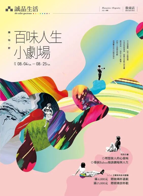 还有诚品的海报设计很有创意,设计上非常注重文字编排、图案图形设计拥有台式小清新的独特风格。每张海报都是非常完整作品,从版式、字体、颜色的细节设计都值得大家去学习和思考。希望能给大家带来灵感。一起和海豹君来看看吧!