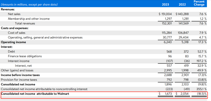 这也是继2023财年Q4季度后,沃尔玛连续第二个季度利润出现同比降幅。