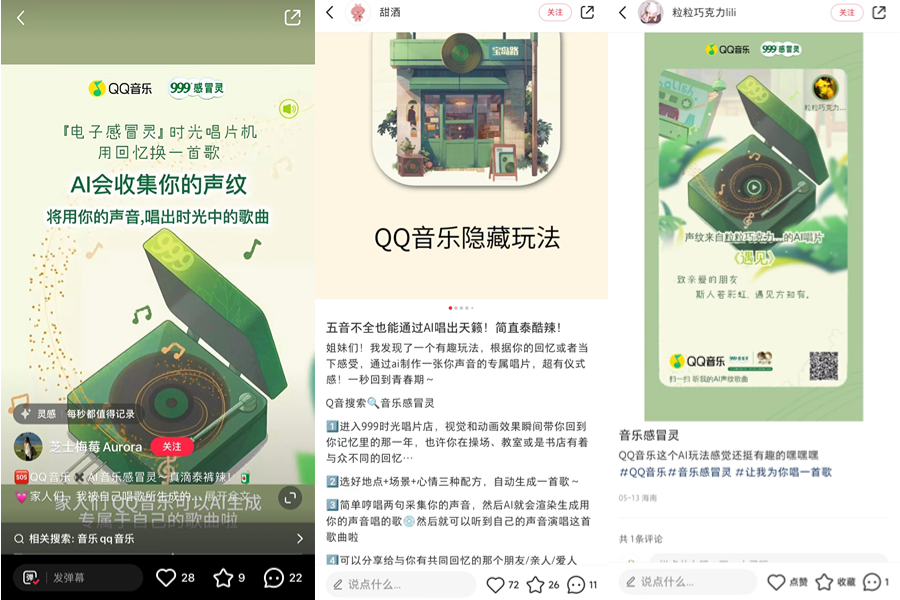 为了把这一份陪伴玩到极致,999感冒灵和QQ音乐联动,推出了【电子感冒灵】时光唱片机H5。你随口哼几句歌,系统就能模仿你的声线,用AI技术翻唱经典歌曲。