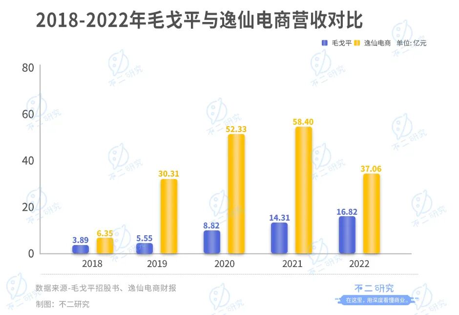 尽管已实现了跨越式增长,毛戈平的营收规模仍然无法与后来者逸仙电商相媲美。