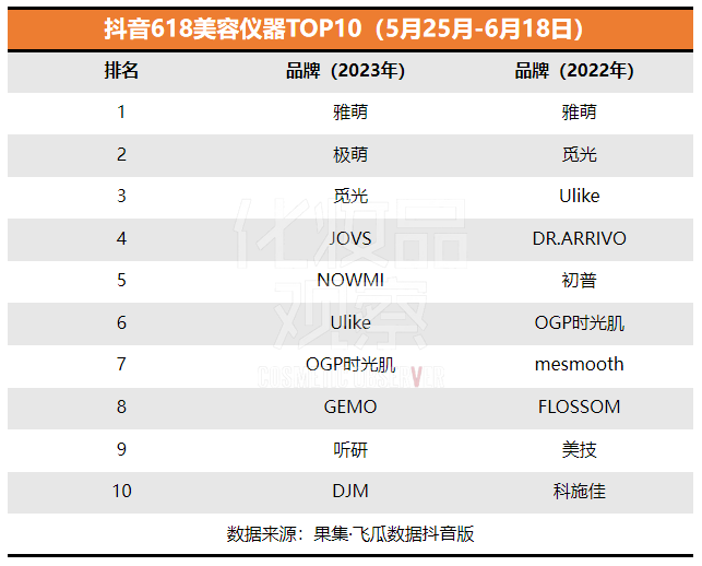 2、雅萌蝉联。今年,抖音美容仪器TOP1依然由雅萌摘得,其GMV突破3亿元。