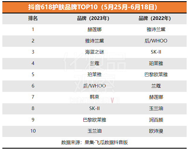 2、赫莲娜夺冠。今年,赫莲娜挤掉雅诗兰黛,成功登顶;相比去年,其涨幅高达292%。