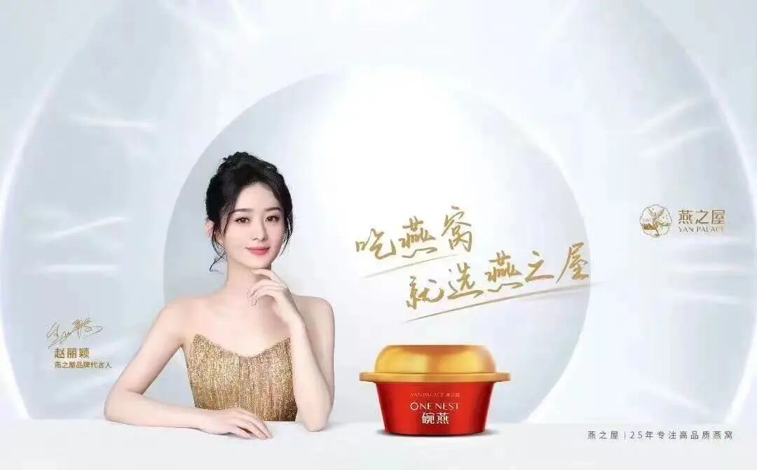 此前,刘嘉玲、林志玲分别为燕之屋代言;2021年初,燕之屋还冠名《鲁豫有约一日行》《爱的小屋》《智者见智》《智造中国》等诸多综艺节目;2022年,燕之屋签下明星赵丽颖作为品牌代言人。