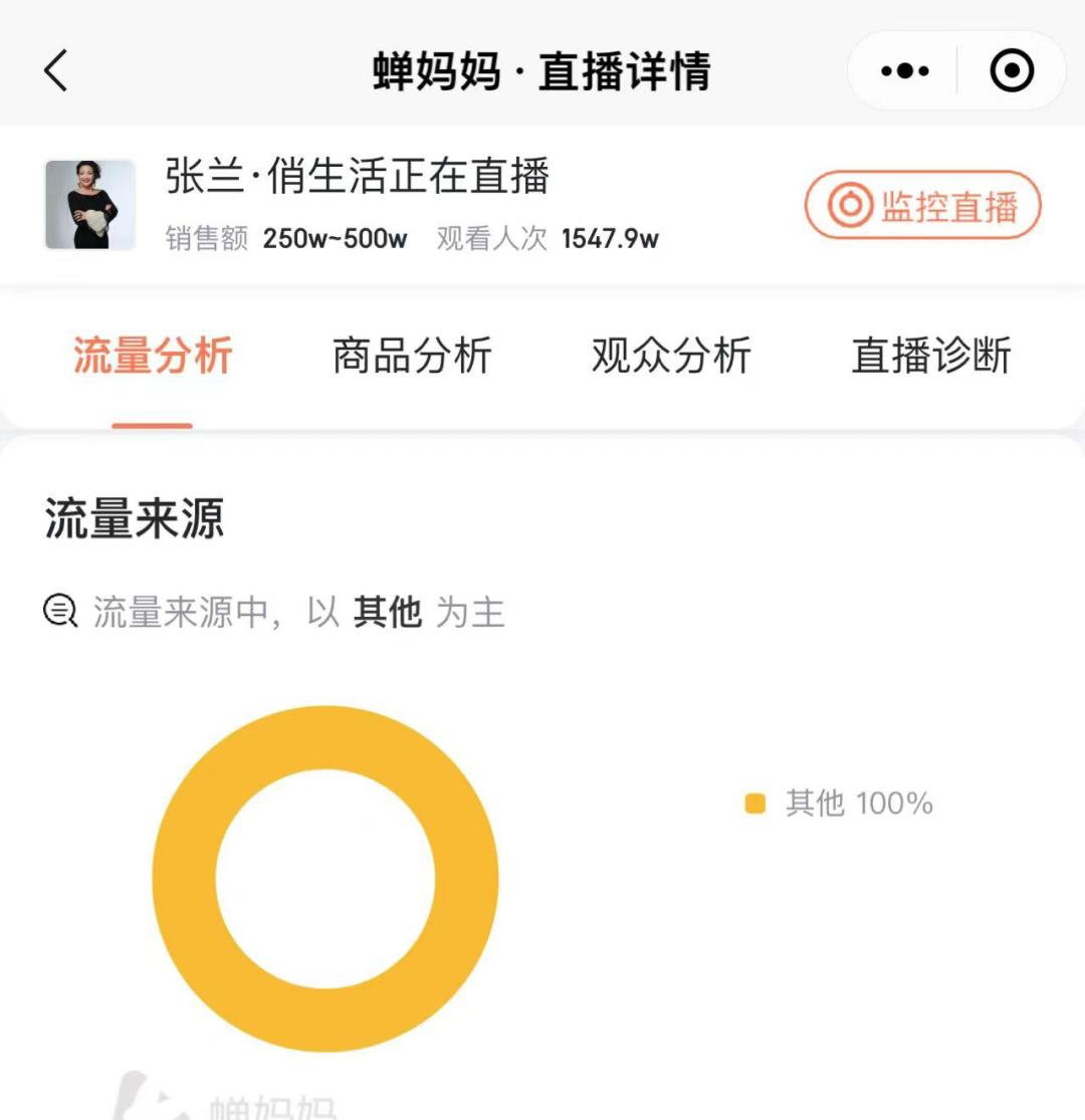 15亿微博流量(实际流量估计有5000万),转到张兰抖音直播间有1500万,完全没有一点额外投流,转化率非常高。