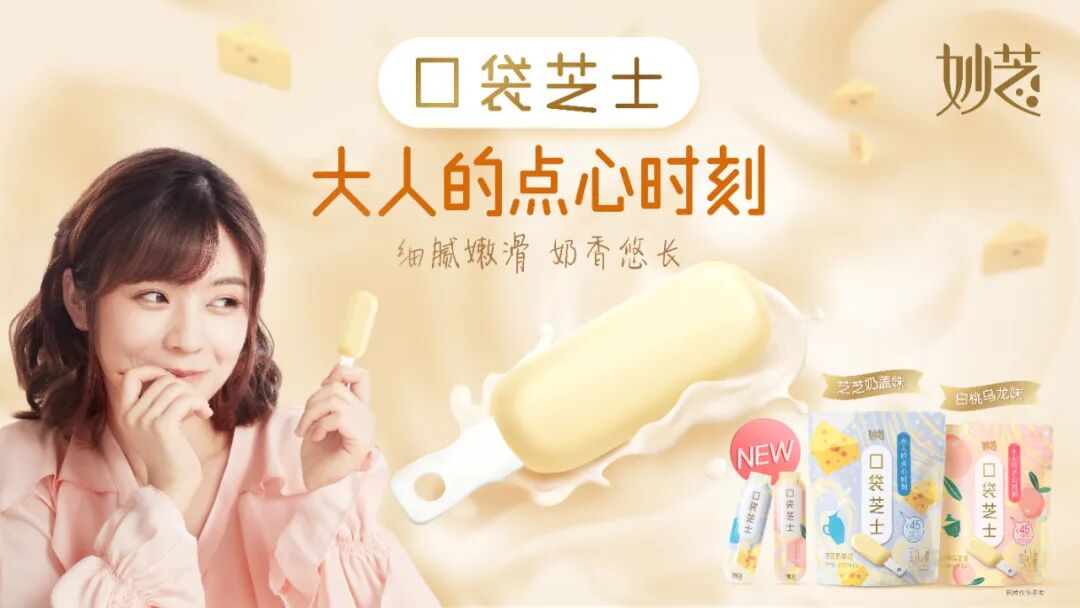 在前几年的时候,伊利旗下成人奶酪零食品牌“妙芝”上市了一款名为“口袋芝士”的新品,率先布局成人零食市场,主打“打开就能吃的细腻嫩滑芝士”,定位“大人的点心时刻”食用场景,用细腻嫩滑口感和奶香浓郁的芝士零食满足大人的“愉悦自我”需求。
