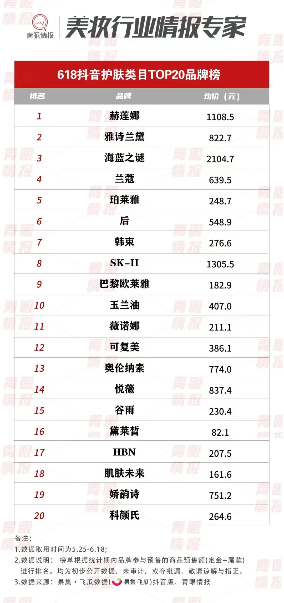 1、从护肤类目来看,国货品牌中珀莱雅是最大赢家,欧莱雅、兰蔻、雅诗兰黛屹立不倒。
