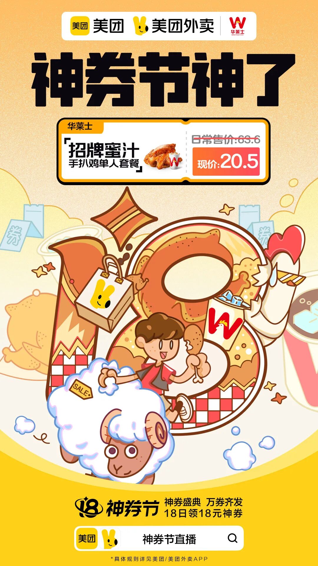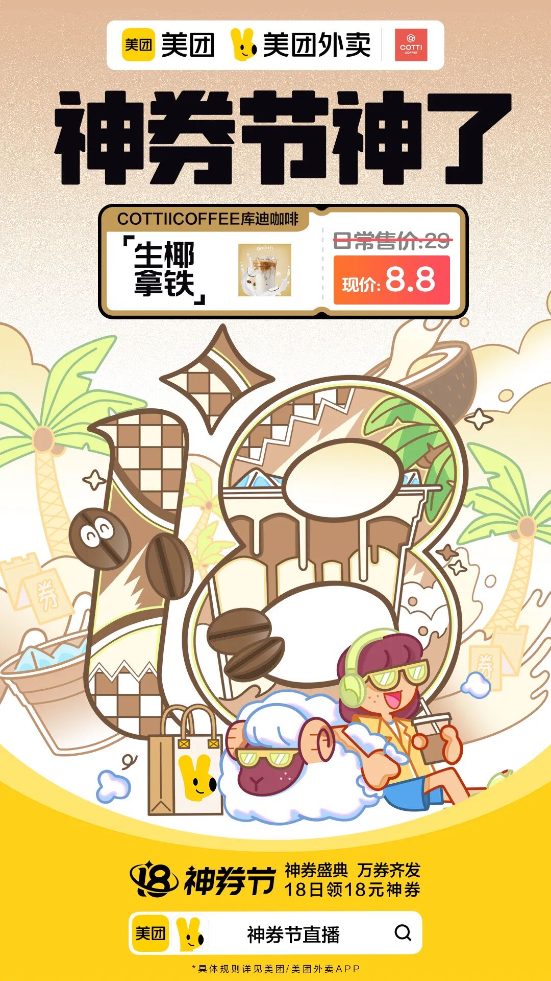 2023年是“神券节”IP运营的第三年,“每月18日抢18元神券”的准则在月复一月的活动中反复强化用户记忆,潜移默化地渗透进用户心智。而本次美团618神券节依旧以“18日领18元神券”为主要利益点,升级了活动优惠力度的同时,仍能保留“18元神券”这一记忆符号。即使汇入“618”大促战场,美团外卖仍能保留自身“神券节”IP的特色,并将6月神券节与“618”大促强强绑定,完成从平台月度大促到年度狂欢的顺利升级。