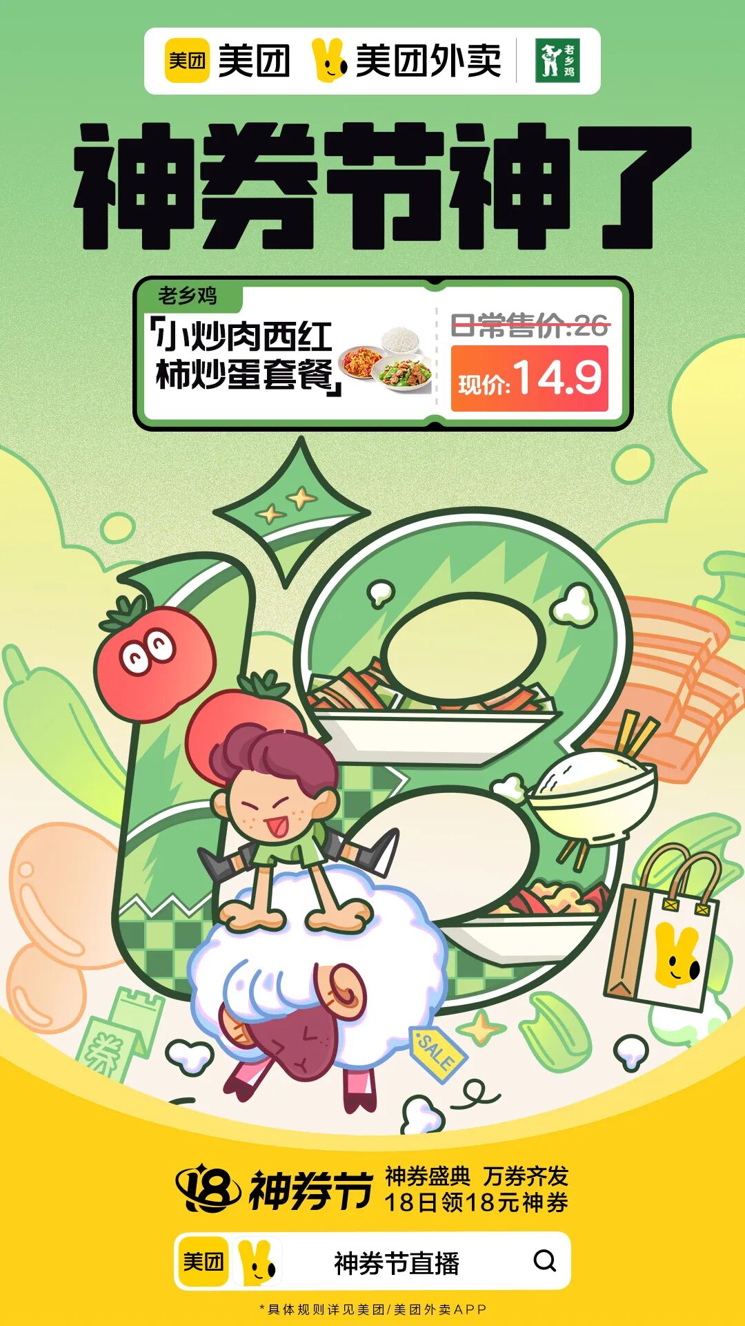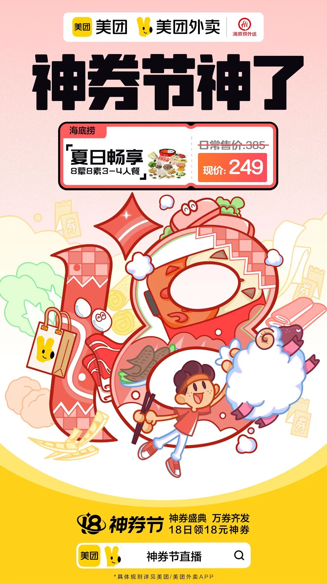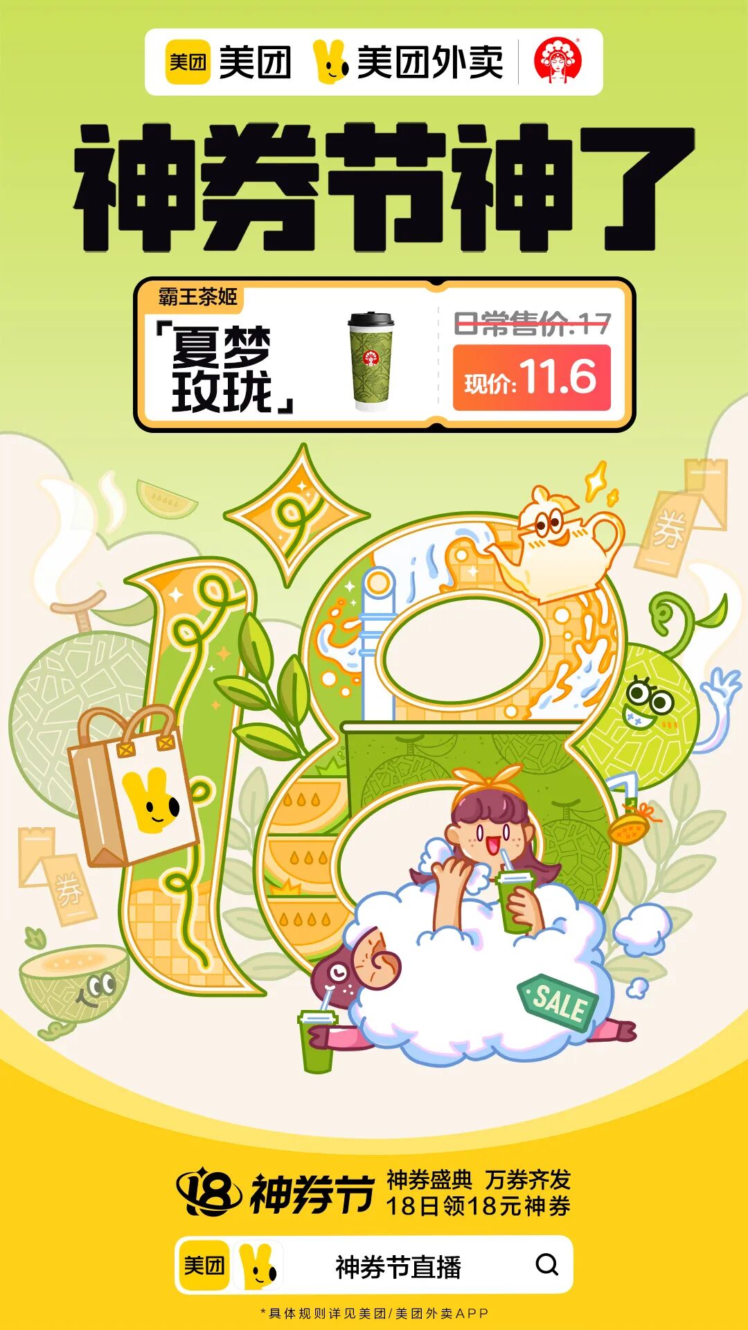 2021年,美团外卖的月度S级大促“神券节”上线,以“每月18日抢18元神券”的机制成为美团外卖用户的月度狂欢节。6月的神券节适逢“618”电商大促,美团外卖选择在此时入局,是水到渠成,抓准时机将运营成熟的大促活动进行IP升级。