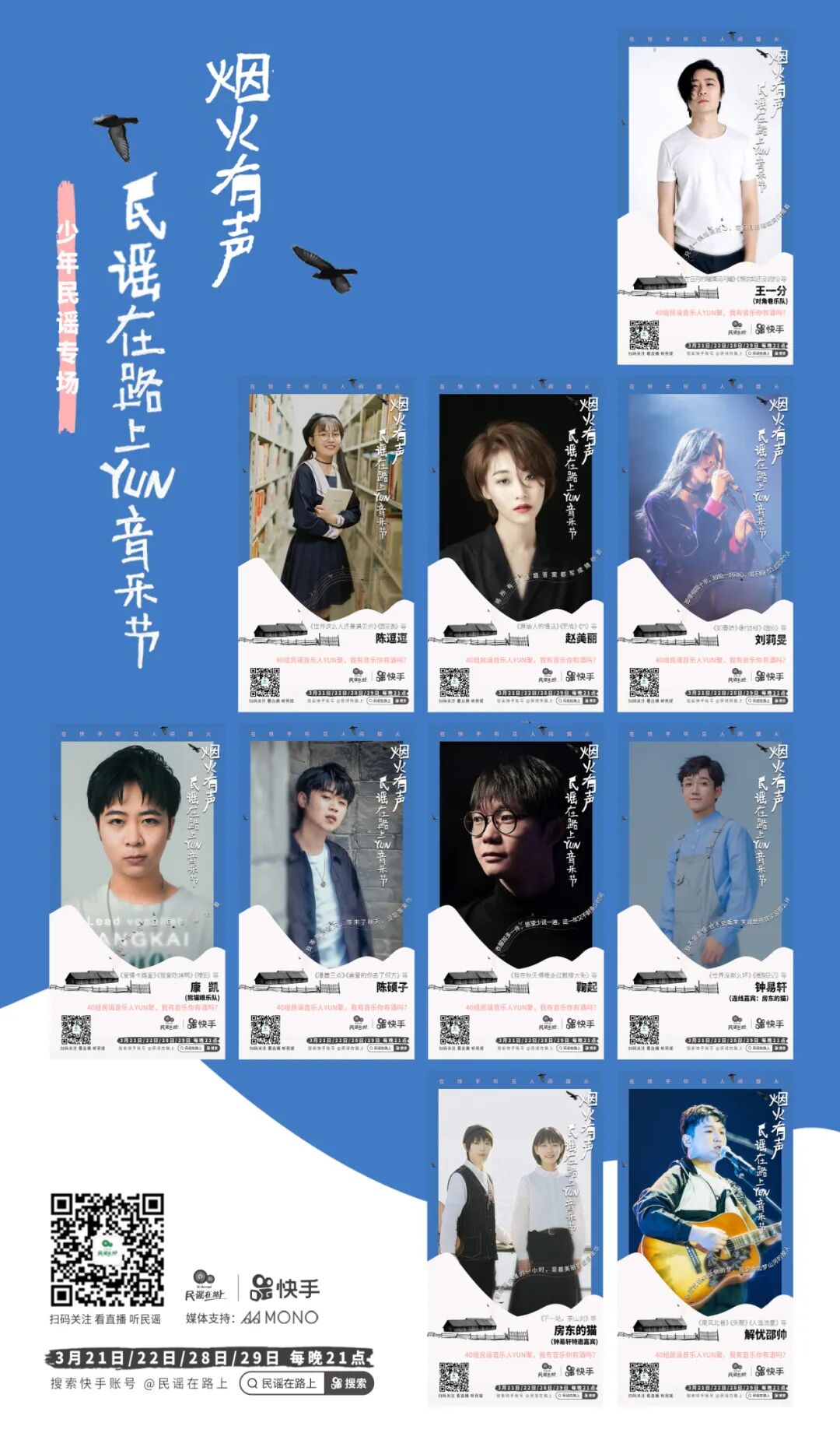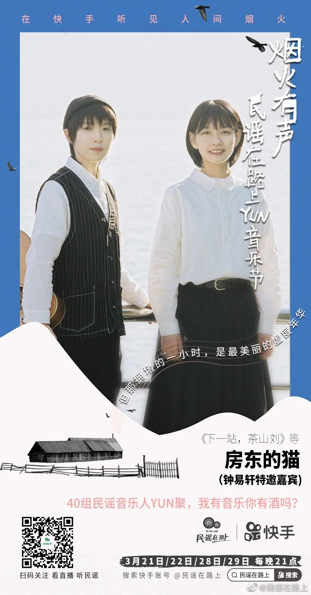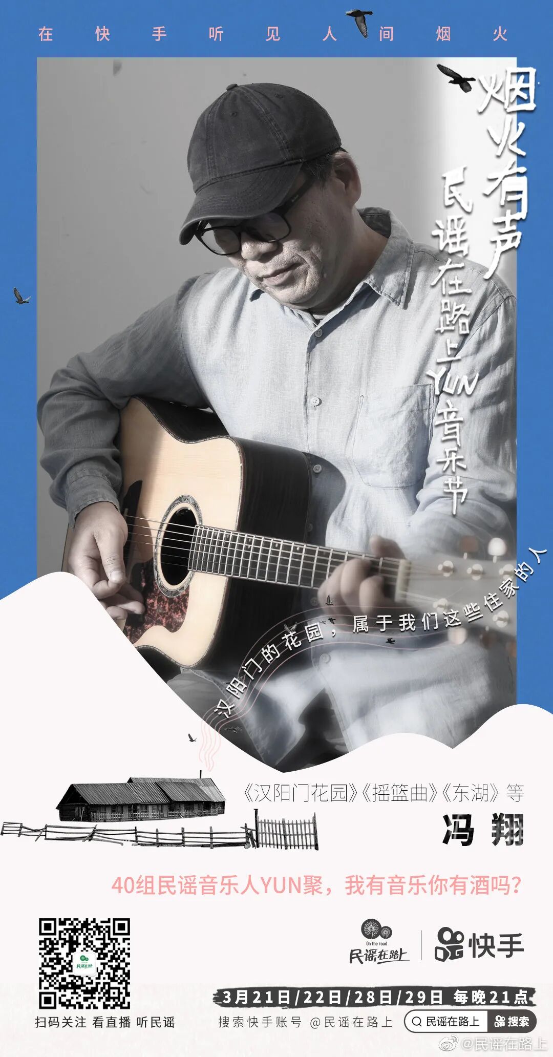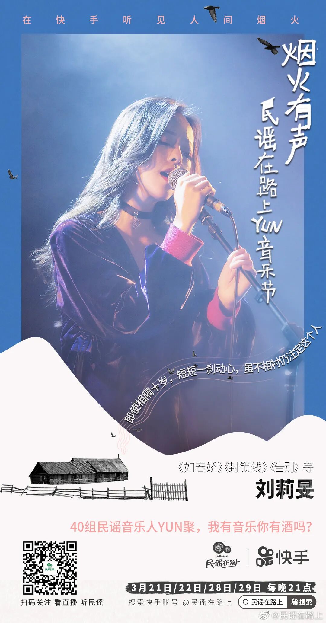 「民谣在路上YUN音乐节」是民谣在路上联合快手主办的大型线上直播活动,为期两周,开播四天。在快手APP,40组民谣音乐人YUN聚会,横跨00后至70后的代表性民谣音乐人在线演出。根据官方介绍,音乐接的阵容模拟真实音乐节,不录播,“不掺水”。