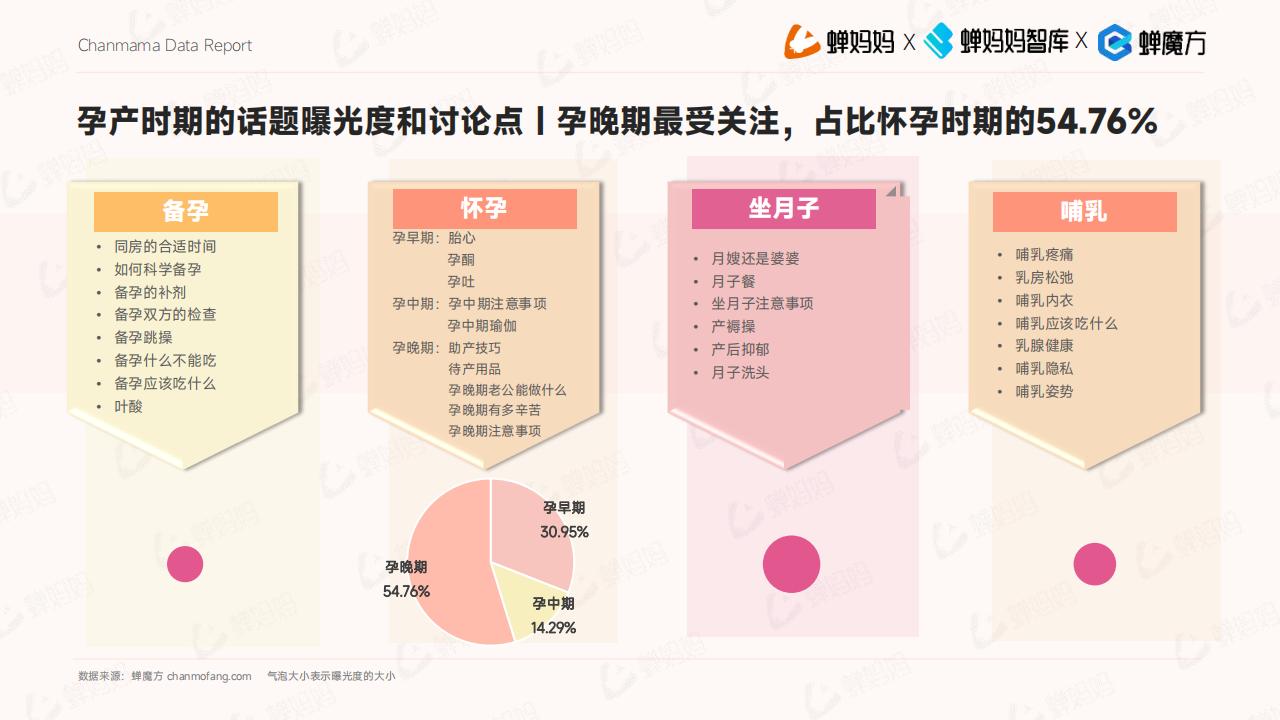 此外,报告揭示了行业用户的喜好和关注点,孕期记录和婴幼教育是行业用户最喜爱的内容,而且对二胎的关注度高于三胎。在孕产各时期中,孕晚期是用户最为关注的阶段。了解这些消费者偏好和需求将有助于企业更加精准地进行营销和产品开发。