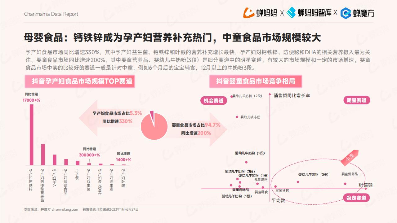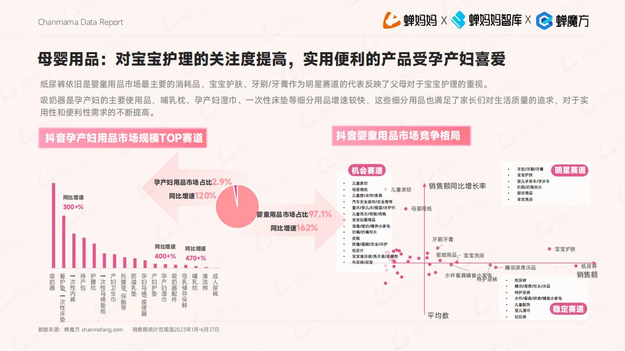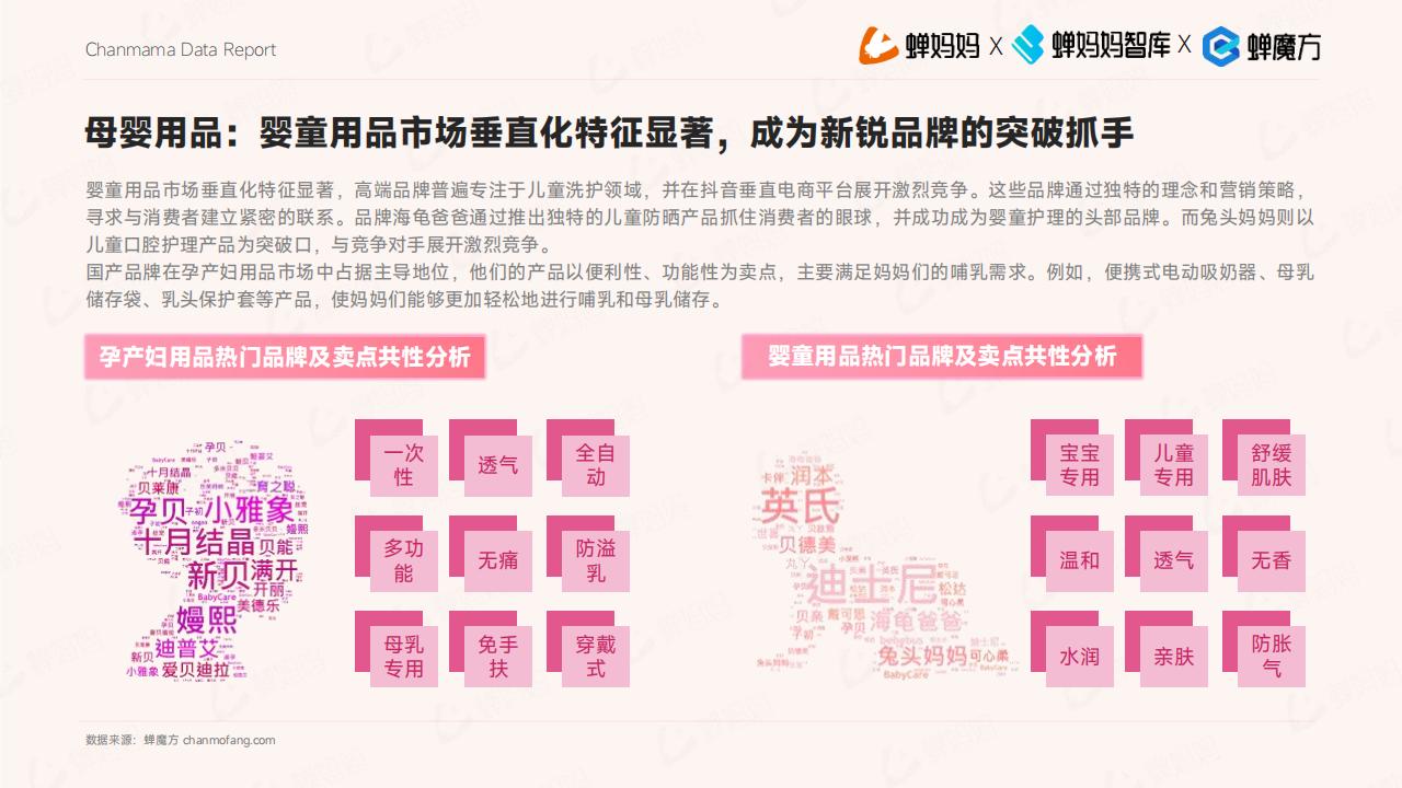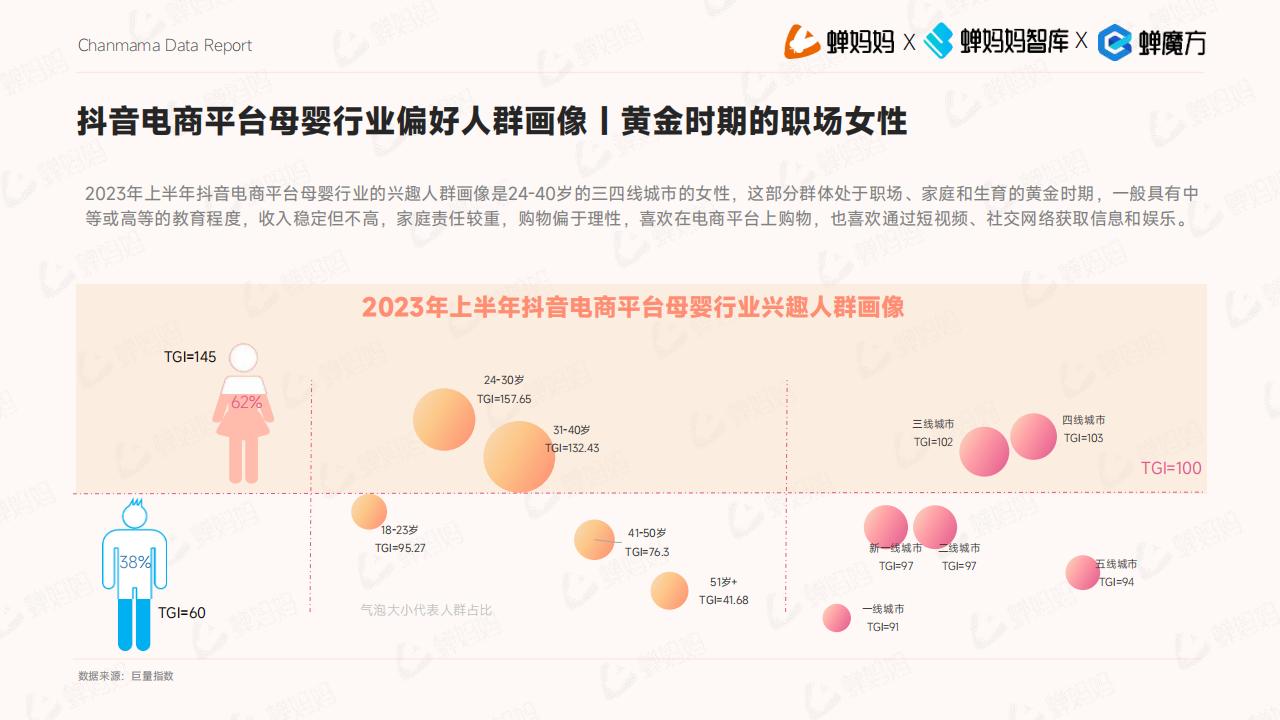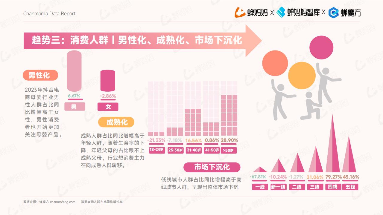 报告显示,由于新生儿出生率下降,母婴行业进入了存量时代。在线上,抖音电商成为了越来越多消费者的选择,特别是24-40岁的三四线女性。这些消费者更倾向于线上购买,为母婴行业的线上销售带来了巨大的机遇。