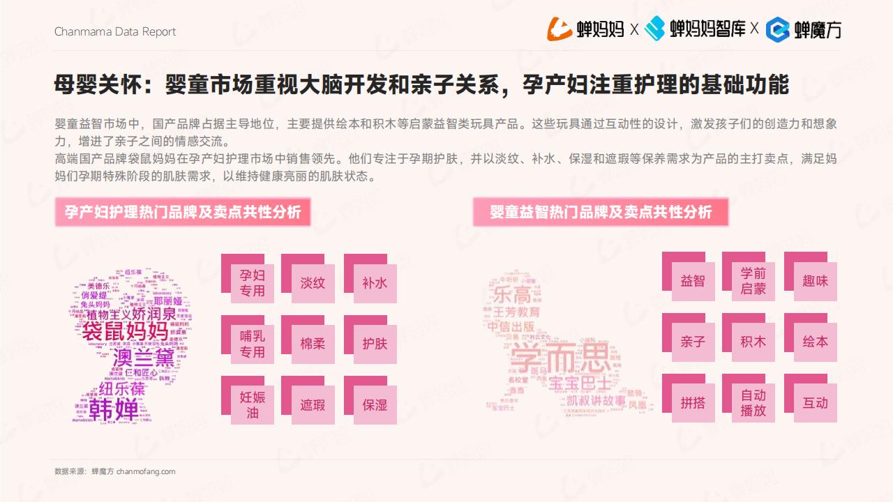 尽管目前母婴行业主要受婴童市场主导,但报告指出,妈妈市场拥有巨大的发展潜力。在互联网时代,妈妈们对于育儿知识和产品的需求不断增长,这为企业提供了更广阔的市场空间。报告另外将母婴品牌划分为传统老牌和新消费品牌两种类型。