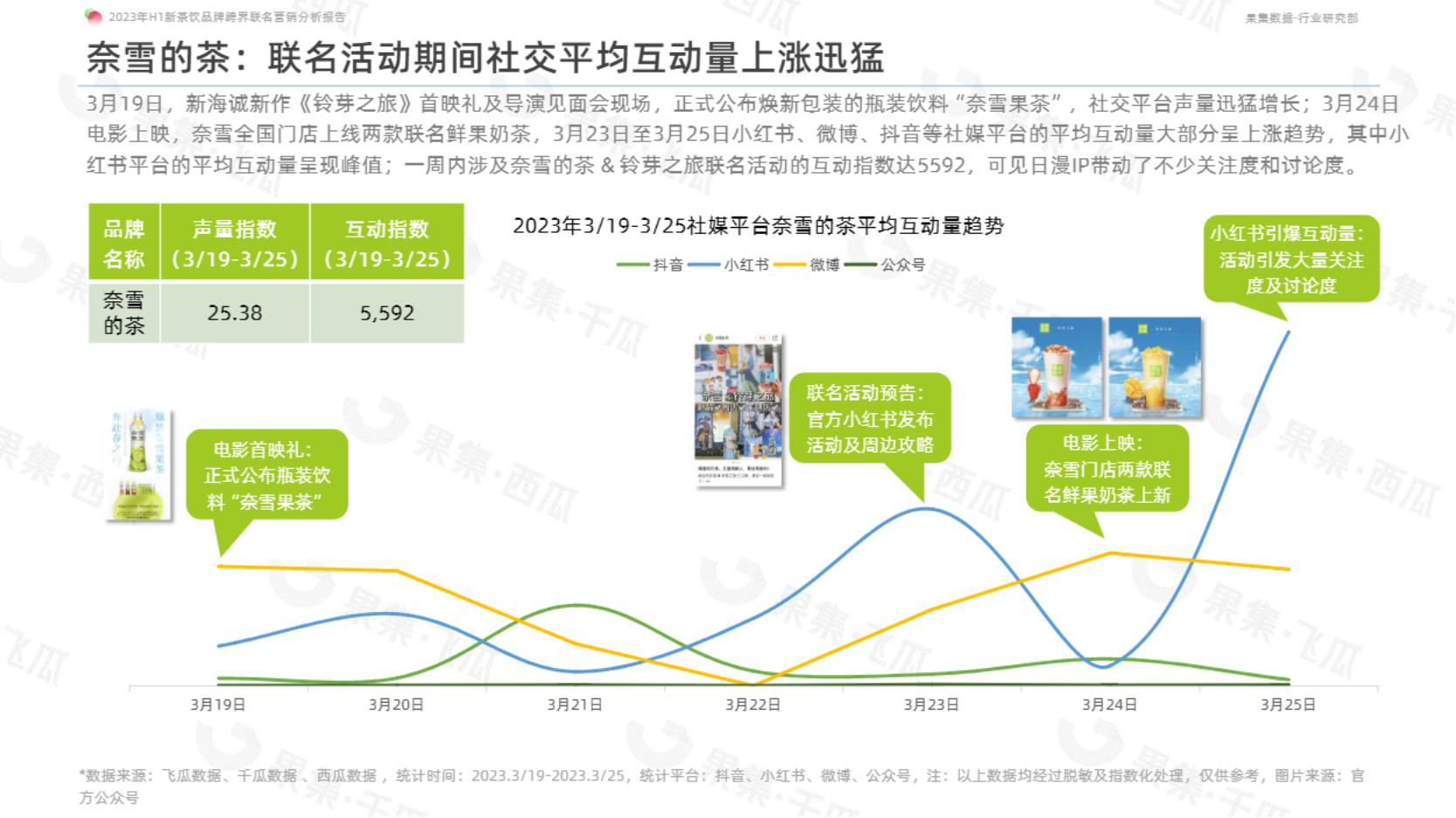数据报告来源:果集行研《2023H1新式茶饮品牌跨界联名营销分析》
