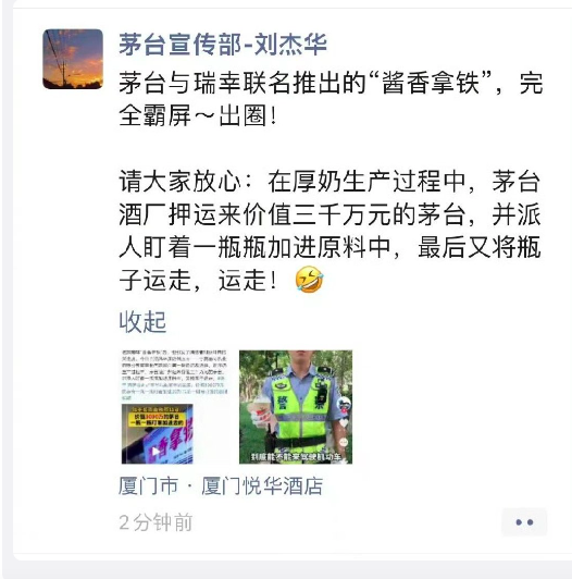 咱就是说从上周开始铺天盖地的瑞幸联名茅台宣传,这波真官方的联名是没跑儿的吧。