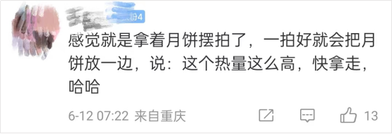 讨论的点主要在于代言人拿月饼的姿势。海报中,郭富城左手将胳膊举过头顶稍稍掩面,右手持着半枚月饼。有网友调侃,“这个中秋有点味道。”