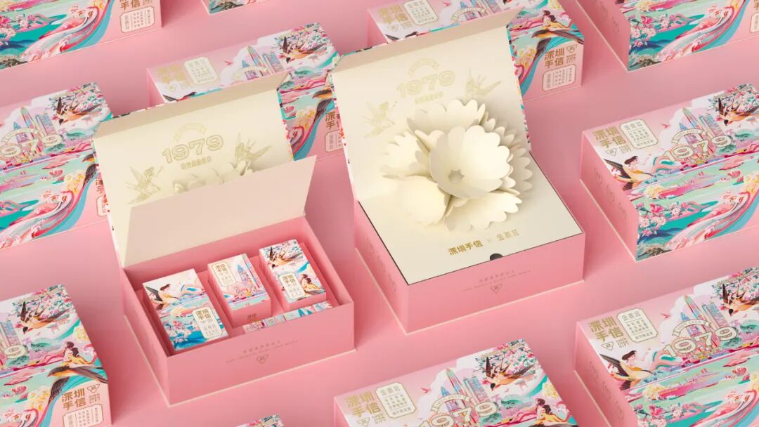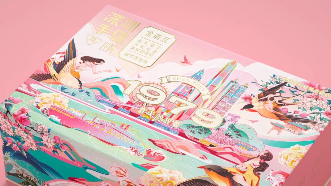 设计上,以“燕”作为灵感切入,既代表“金燕耳”品牌,也象征着1979年深圳的春天,赋予礼盒双重价值意义。外包装的插画从“陆上建筑”到“海上游轮”,燕子翱翔、繁花盛放,无一不在诉说着春天的故事。
