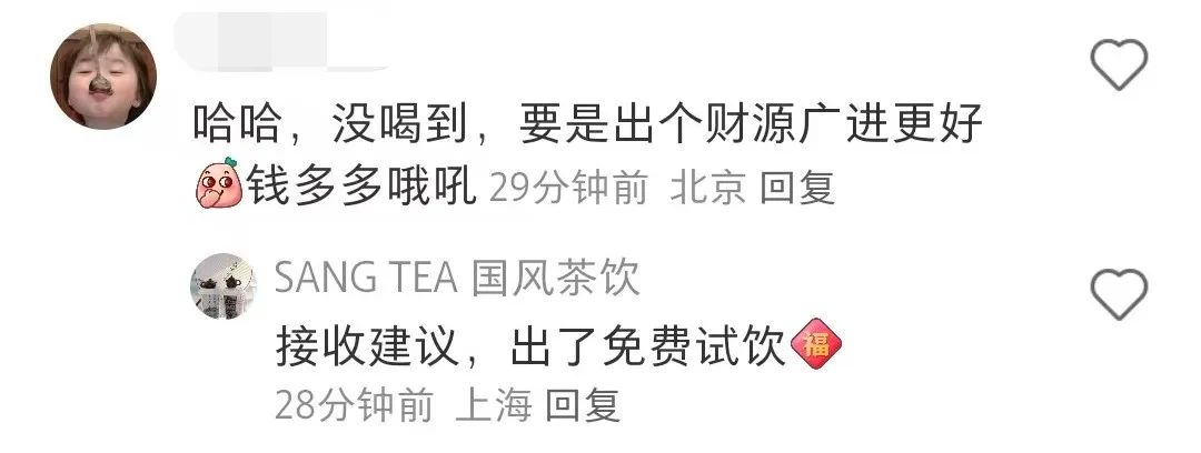 有网友表示,希望出个“财源广进”的杯套,桑茶的官号表示,接收建议,安排!