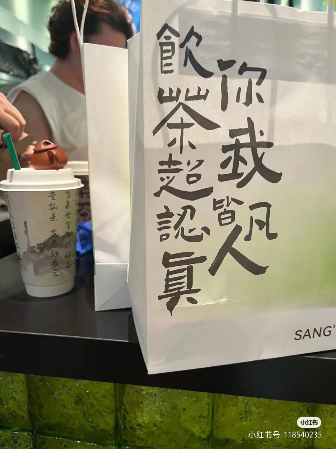 就说手提袋上的这句“你我皆凡人,饮茶超认真”,就很有年轻人随心所欲的佛系精神。
