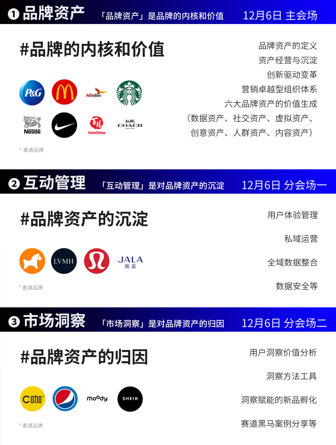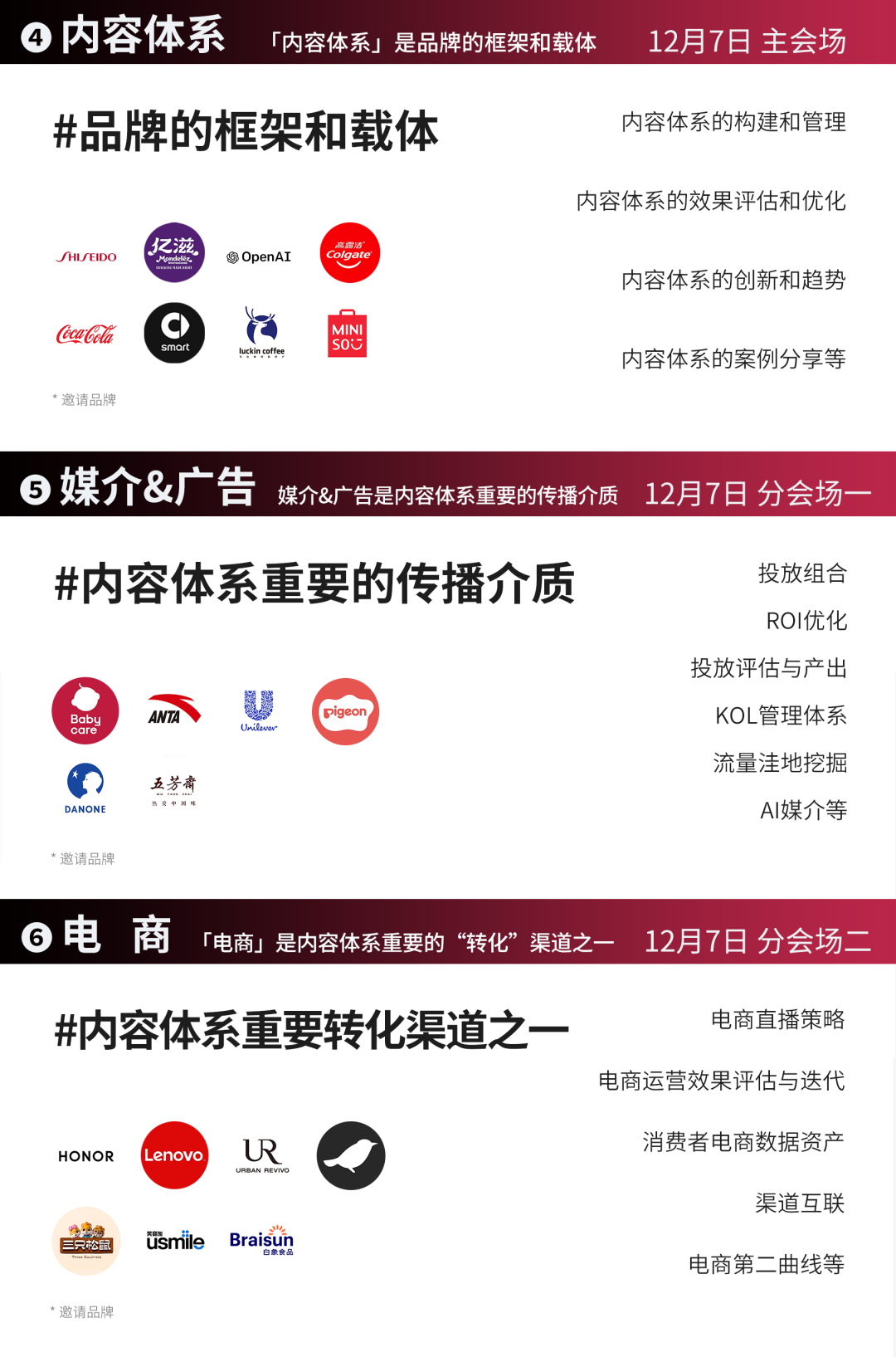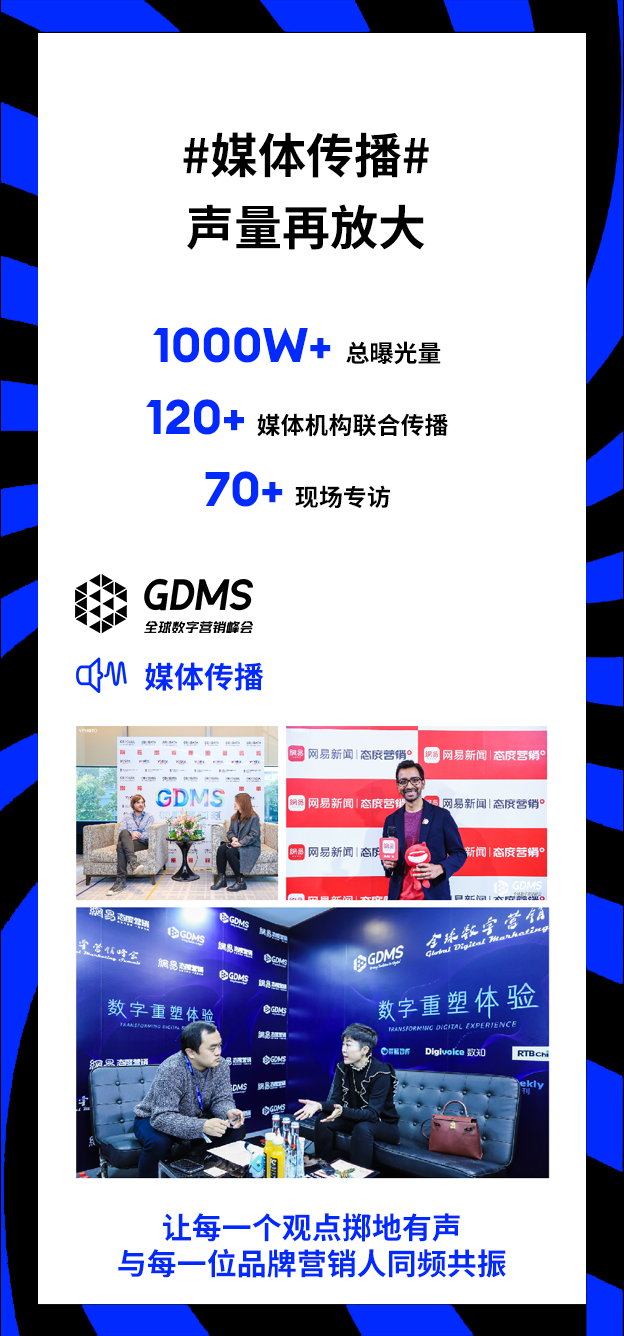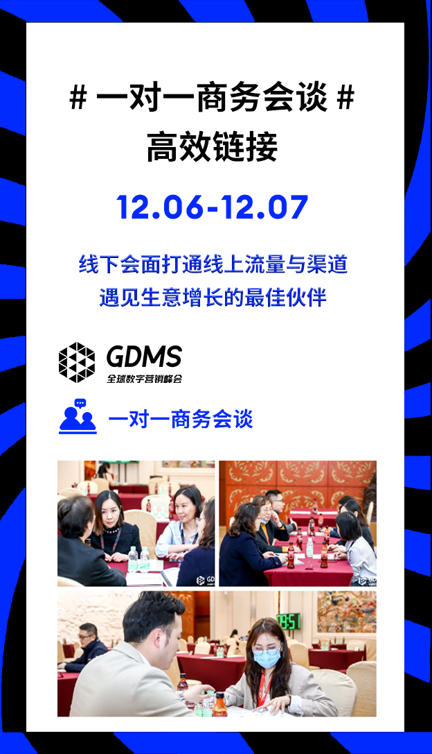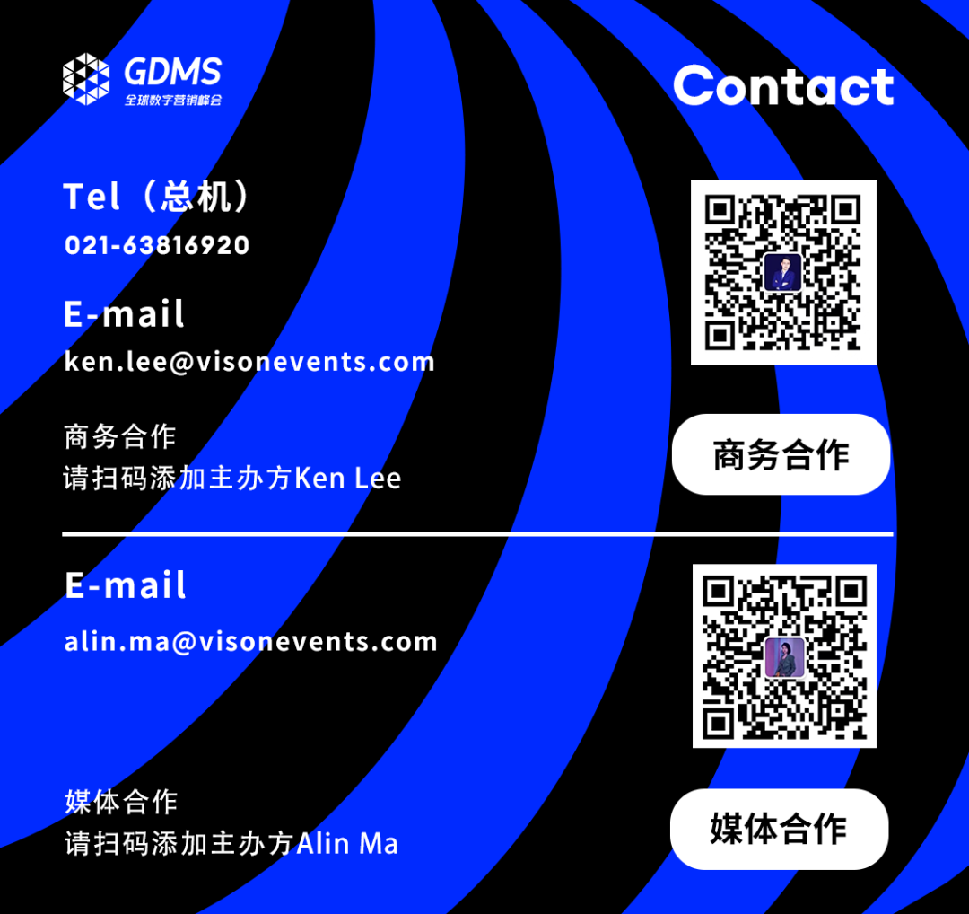 今年对于GDMS来说,是特殊的一年。自2014年在上海国家会议中心举办首次GDMS全球数字营销峰会以来,到今年,GDMS已经走过了9年。作为品牌营销行业的国际盛事,它既见证了过去9年来数字营销行业的盛衰沉浮,更代表着下一个9年的风向标。今年3月29日-30日,我们在广州白云国际会议中心,以「破圈」为主题,在广州市商务局的指导下,带领大家穿透迷雾,走出增长困境,重拾市场信心,半年之后我们有幸见证众多品牌以高速增长之态回归并引领行业市场,由此我们更加确信这股改变力量的存在。因此,12月6日-7日,我们决定再度回归上海,围绕「共营」,开启第九届GDMS全球数字营销峰会的全新征程,以更全球化的视角,携手全行业3500位的品牌营销人共同为品牌数字营销定义新的潮流。在品牌营销人的世界中,唯有“高效“才能带来增长的确定性与发展的安全感,为此,我们一直未停下思考如何通过一场线下的活动真正高效让每一位参与者有所收获。今年在议程板块的内容设置中,我们启用全新的方式,根据当下企业品牌营销的职能体系进行会场的划分,我们希望以更直击品牌营销体系的全局视角,更深入地解读品牌营销生态环境的变化,系统性地解决当下营销人的痛点问题。我们特别设置了「品牌资产」、「内容体系」两大主会场,以及「互动管理」、「市场洞察」、「媒介&广告」、「电商」和「合作伙伴专场」六大分会场。如果将「品牌资产」定义为品牌的内核和价值,那么「市场洞察」将成为品牌建设资产的有效归因,而「互动管理」则是品牌对资产管理的高效沉淀。● 如何升级以消费者为中心的数字化组织,真正通过品牌经营指导企业战略及多部门协同”?● 首席对话:打造品牌卓越型公司——来自品牌掌舵者的远见「内容体系」已然成为当下品牌建设的基础框架和载体,而「媒介&广告」作为品牌内容传播的重要介质,「电商」作为品牌内容转化的重要渠道,两者共同促成了品牌的可持续增长。● 品牌如何构建科学有效的内容,协同多平台的组合与应用?● ROI Optimization——预算分配与投放组合如何实现平衡我们可能经历了新时代下营销行业的巨大冲击与挑战,但同时我们也有幸见证了这个时代下最优秀的品牌营销人如何通过科学经营,高度协同,高效迭代,带领品牌实现快速增长。今年我们以品牌的发展、影响力、消费者喜爱度、时效性投资回报率作为标准,再度精选出全球范围内最具影响力的营销决策层相聚GDMS的舞台,其中不乏全球头部品牌的企业掌舵者、行业资深的领军人物更有国内高速增长黑马品牌的幕后操盘手。在如今增长和确定结果为先的商业世界中,让我们在今年的GDMS中与这批有识之士,共同发挥营销创造力主导的作用,创造新的增长杠杆。● 宝洁,全球护肤及个护品类总裁,Markus Strobel● 资生堂,全球消费者营销及电商 执行副总裁,Welington Fonseca● 联想,亚太区电商总经理,Ajay Shankar● smart品牌,全球公司销售、市场及售后副总裁,张明霞超级早鸟票限时5折开启,席位有限,即刻扫码预定,与3500位品牌营销人共赴营销行业年度盛会,「共营」当下,「数见」未来。●门票一经售出概不退款,详细门票权益可扫码进入了解●本次超级早鸟票售卖,截止日期为2023年10月8日我们致力于打造一场体验“超凡”的活动,不仅是一场线下峰会活动,更是一次新老朋友的顶峰相聚、一次拓宽行业认知的新奇体验、一场洞见未来的趋势对话。真正能够锚定未来价值和目标受众的场景其实并不容易构建。今年在优质内容的基础上,我们限定优选35家行业优质生态伙伴,在现场打造特色互动展位,以打造优质交互场景,促进精准交流和匹配,最大化的实现供需端共赢。区别于传统会议信息单向传递,峰会精心设置一对一商务洽谈等精彩有趣的互动环节。组织嘉宾就专业话题进行交流、探讨。没有繁文缛节,内容更精准,互动更高效。从品牌方到媒体平台,从营销技术公司到广告代理商,一网打尽行业上下游资源,在这里你将遇见生意增长的最佳伙伴。新老朋友再度相聚,觥筹交错间交流行业趋势与洞察,轻松氛围下开拓高端人脉与行业认知。圈定同频认知高端人脉,与业内同仁深度切磋行业知识,交流职业故事,探讨合作机遇,结识不可多得的朋友和商业伙伴!2023年下半年,经历了资本、流量褪去后市场的严酷考验,行业格局已经发生了巨大改变,品牌对营销的界定,需要更加精准、科学、健康的体系,更优秀的品牌案例也更加值得被挖掘,并推到台前。VCON星创奖在2023年全新升级,再度联合行业专业机构、生态合作伙伴与资深专家,共同挖掘具有标杆意义的优秀品牌,助推创新力量成长。品牌是营销行业发展的主角,但行业的发展离不开每一位生态建设者的支持。Google、Twitter、LinkedIn、Facebook、腾讯广告、巨量引擎、阿里巴巴、B站、网易传媒、快手、知乎、小米营销、小红书等海内外的科技巨头均亮相过GDMS,为参会嘉宾展现最前沿的科学技术、智慧营销以及由此转化来的体验卓越,品效合一的营销成果。GDMS与120+行业主流媒体合作,千万级曝光量;让每一个观点掷地有声,与每一位品牌营销人同频共振,线上+线下全面触达,360度传递有价值声音;横跨营销、财经、垂直行业(包括但不限于日化/食品饮料/母婴等)、科技领域等行业主流媒体。