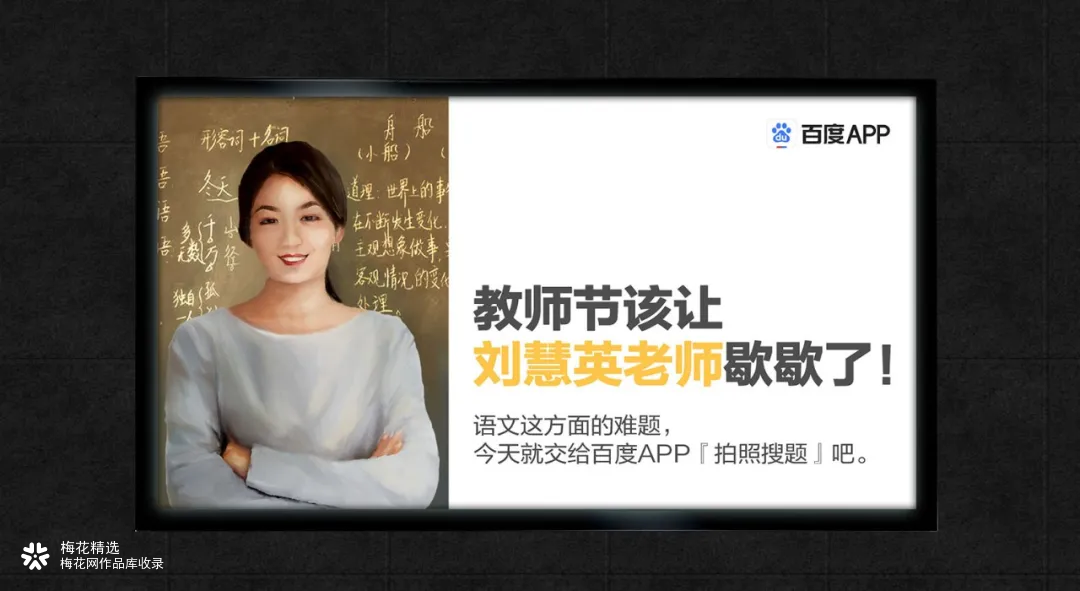 这是百度APP为推广自家的“拍照搜题”的功能,以“该让老师歇歇了”为主题,发布的系列户外海报。
