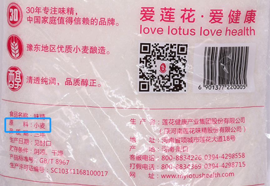 但是,看了配料表我们就会发现,莲花味精的原料只有小麦,是真正0色素、0防腐剂、0香精、0蔗糖,没有任何科技与狠活。
