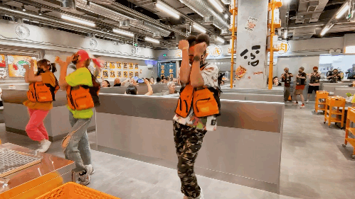 它这哪是火锅厂啊,分明是偶像工厂,店员颜值在线,载歌载舞不在话下,人均练习生。吃顿火锅,还附送一段超近距离舞台秀,氛围拿捏到位,主打一个快快乐乐。咱就是说,在情绪价值这块管够管足,真的是够够的了。以至于有人将其称为“e人天堂,i人地狱”,但也有人表示“i人来了都会变e”,毕竟快乐会传染嘛。