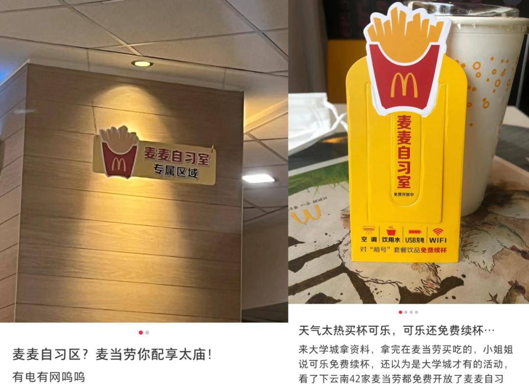 在移动互联网如此发达的今天,消费者能够轻而易举的接触到全球的新鲜资讯,在对品牌的感受上,空洞的高颜值正在失去受众。因此,将品牌文化注入空间,融合人文、历史元素,或运用艺术品、环保材质,不仅能让消费者沉浸式了解品牌文化,还能借此体验增加消费者在店时长,进而触发消费行为。除了致敬文化、丰富体验之外,一些品牌也通过门店设计增加空间利用效率,扩充门店体验,延展品牌活动。除了刚才提到的lululemon,在门店内布置专属空间,为品牌会员提供运动、社交的场域,麦当劳在今年暑假期间,通过开辟专门的区域设置自习室,也强势收获一波好感。