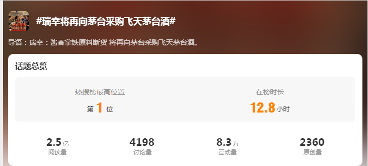 当天,“#瑞幸将再向茅台采购飞天茅台酒#”登上微博热搜,引起热议。不少网友为“长期售卖”点赞。