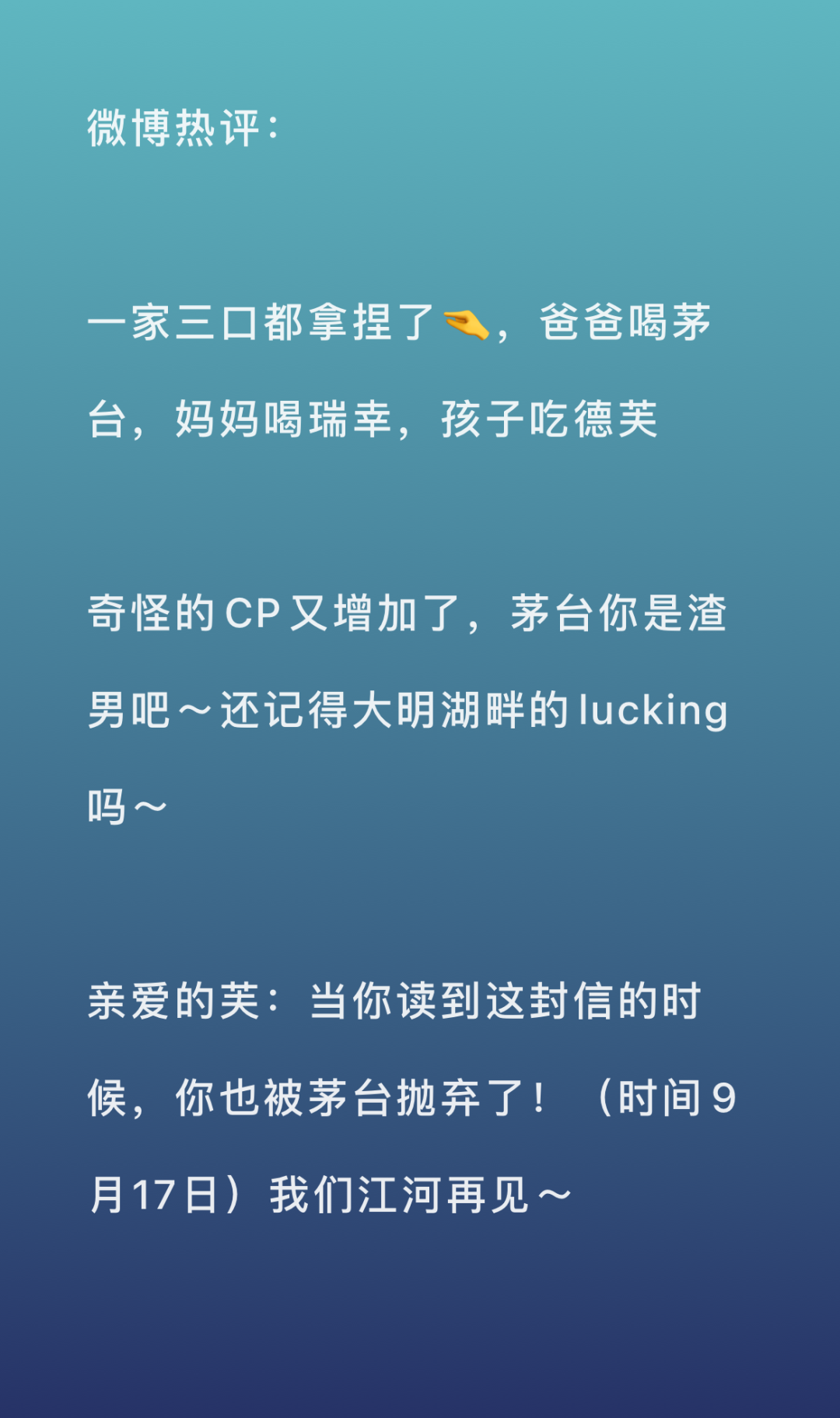 通过茅台跟瑞幸、蒙牛联名,再到和德芙品牌合作事件,网友热评:“爸爸喝茅台,妈妈喝瑞幸,孩子吃德芙”,“茅台你是渣男”...