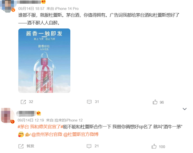 甚至有网友将茅台和杜蕾斯的海报和联名都想好了,起名“酒牛一茅”