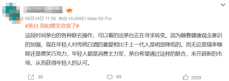 也有网友赞同茅台的改变:“茅台通过联名开辟新市场,获得年轻人认可”。