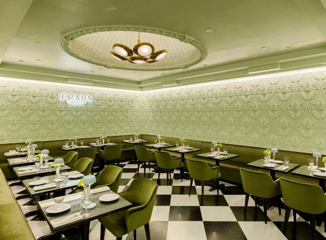 结合餐饮店打造视觉锤,Prada有过之而无不及。