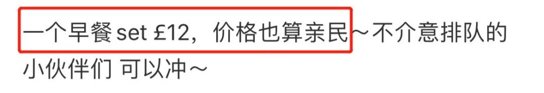 在Burberry接管期间主要售卖英式特色早餐,价格为12英镑,约合人民币100元左右。