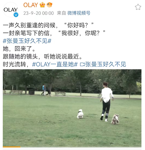 有了这些天然的合作契合度,当OLAY把镜头对准张曼玉,无需刻意营销张曼玉,而只是把她近况和日常展现给大家:张曼玉给自己的松弛、淡然感,是保持美貌的秘诀宜人的气质,是历经岁月雕刻的沉稳自信,大家自然get到“时光流转,她还是她 ”的深意。当品牌从张曼玉一直是女神,延伸到OLAY也一直被一代代消费者喜爱后,把片子成功落脚于#OLAY一直是她# 。03