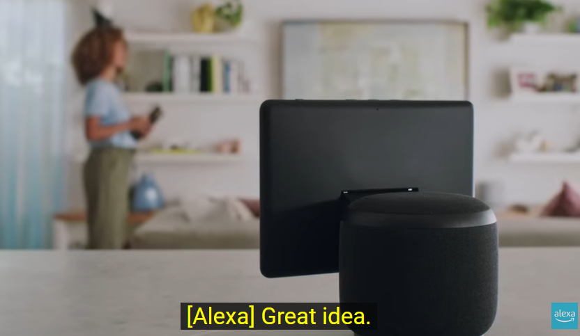 在一条演示广告中,用户和Alexa进入聊天模式。用户想要举办一场派对,让Alexa推荐派对主题,然后再依据主题推荐合适的场地。当用户和Alexa商量好一切之后,用户要求“给我的朋友发送下周五晚上8点的邀请邮件吗,神秘一些”,Alexa便欣然答应,并阅读以“你准备好度过一个难忘的夜晚了吗”开头的邮件给用户确认。