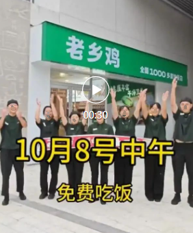 今天中午,老乡鸡全国上千家门店免费宴请全国,只要进店就能免费吃。