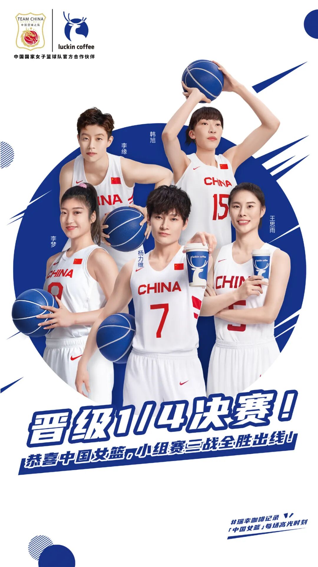 瑞幸也第一时间发出庆功海报,为中国女篮发声——“实力与幸运,永远属于中国女篮姑娘们!”。