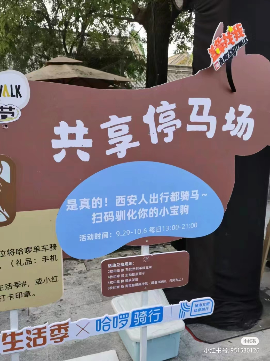 仔细一看,这组“马车”(不是)马造型的单车,其实是哈啰骑行的活动。