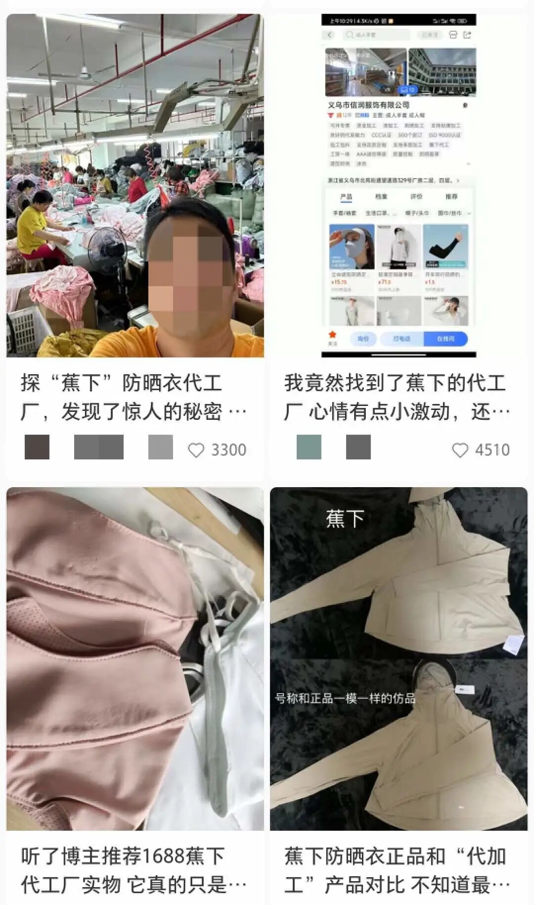 图/小红书上,蕉下代工相关笔记