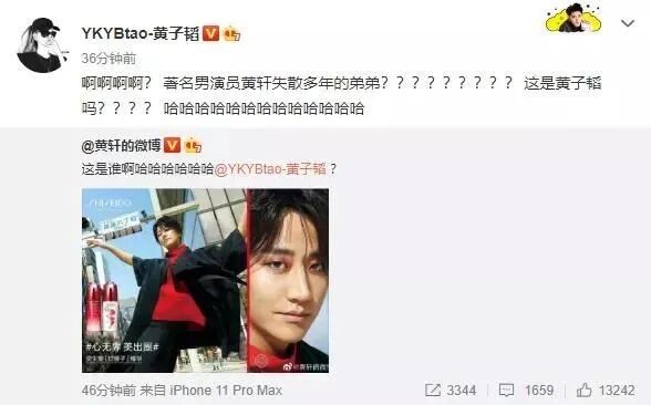 黄轩本人还自己玩梗,在微博@黄子韬问“这是谁”,并引来黄子韬亲自认领这个和自己失散多年的哥哥。