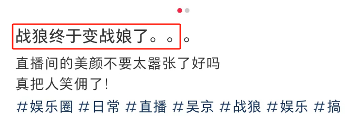 不得不说,吴京“战狼”滤镜是彻底碎了,网友忍不住纷纷调侃战狼变战娘。
