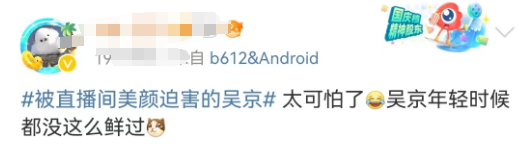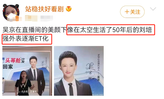 但过度消费滤镜,网友看多了也会觉得过度失真,审美疲劳。所以这次吴京被过度美颜之后,网友们之所以纷纷下场调侃,是对网红直播美颜现象的反感。